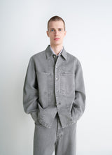 This overshirt reflects Lemaire's love for workwear and reinterpretation of archetypal pieces. It is made from medium-weight denim that has been garment-dyed to give it a snowy patina. The combined effects of dyeing and washing soften the fabric, giving this piece greater comfort.