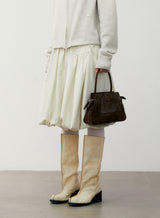 This Low Classic Bubble Midi skirt is a seasonal Soft-touch peach material,
