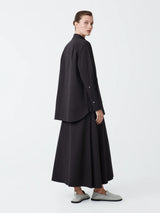 The Lawson has a feminine silhouette, with long lines and plenty of movement. It has an asymmetrical drape created by off-centre pleating on one side. It is made from our signature mid-weight cotton; soft, with a matte, powdery finish.