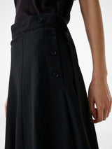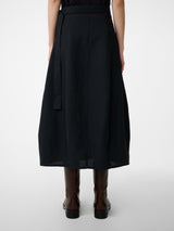 Studio Nicholson’s Orcha skirt offers a thoughtful twist on an understated wardrobe pillar: the humble black skirt. Constructed with a tie waist, the skirt is expertly cut from panels of our powder viscose linen: a fabric that combines the breathability of linen with the soft, fluid drape of viscose and deployed here to accentuate the streamlined, easy-to-wear shape.