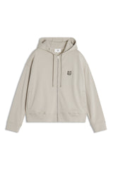 Long sleeve fleece hoodie. Oversized cut with zipper closure and embroidered Bold Fox Head patch.