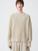 This chunky, textured rib knitted from a matte cotton yarn, Coe is a classic crew neck in a substantial weight. Its boxy shape is complemented by a casual saddle shoulder, which together create a relaxed, laidback appeal.