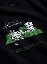 A.P.C. Black "Hôtel Souvenirs" T-shirt in organic cotton. A.P.C. and JJJJound interaction.