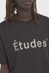 The Études DK Brown is a short sleeve cotton jersey tee-shirt, with a rib knit crewneck collar. The Études logo is printed at the front.