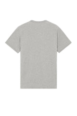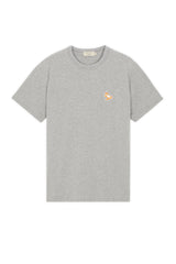 Unisex short sleeve cotton Maison Kitsune t-shirt in grey. Rib-knit trim neckline, reinforced seams at the sleeves and hem. Classic cut with Chillax Fox patch embroidered on the breast.