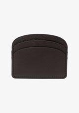 A.P.C. Cardholder in smooth dark chestnut brown grained leather, inspired by the Demi-Lune bag.