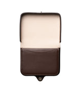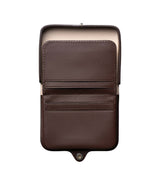 A.P.C. Smooth calfskin. Vegetable-tanned, will develop a natural patina. Spanish material and production. Leather molded using traditional process. Rounded corners. Flap closure. Small curved snap tab. Coin pocket above, cardholder below. Five-position cardholder. Small "A.P.C. rue Madame Paris" logo embossed on front. Cowhide leather and polyester lining, card compartment. Silvertone hardware.