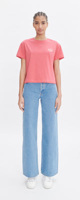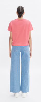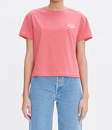A.P.C. Raspberry T-shirt in heavyweight organic cotton with a logo embroidered over the heart.