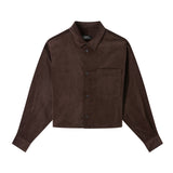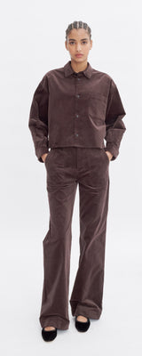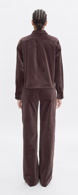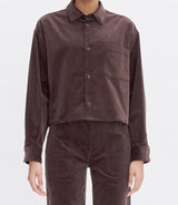 A.P.C. Loose cropped dark chestnut brown corduroy shirt.