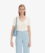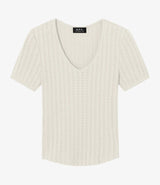 A.P.C. Ecru T-shirt in organic cotton with small openwork embroidery.