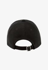 A.P.C. Black baseball cap with A.P.C. logo. Topstitched seams and visor. Adjusts with tab. Two embroidered eyelets on each side. Headband and seams reinforced on interior with grosgrain band. Bonded cotton lining.