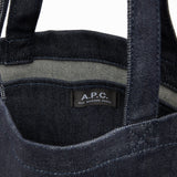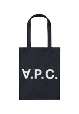 A.P.C. vertical tote bag in japanese denim canvas silkscreened 'v.p.c.'