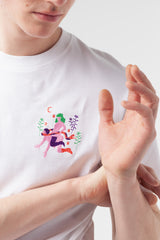 100% sustainable cotton-made t-shirt, out of light (180g/m) and flexible fabric. Straight-cut with round neck. Short sleeves, embroidered pattern placed on your ♥. Double stitching detailing on sleeves and t-shirt. Made in Portugal with love.