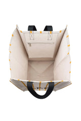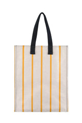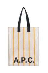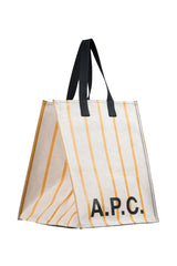 From Parisian label A.P.C., the Construction tote bag in White with Orange stripes. Comes with topstitched cotton handles designed for hand carrying and A.P.C. logo silk screened on front. Wide side panels fold to adjust capacity. Large contrasting rectangular base. Interior zip pocket. Contrasting double topstitching.