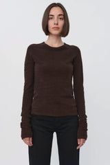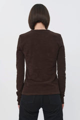 Our Legacy Slim Jersey Long sleeve in Espresso Terry. Produced in a textured cotton terry jersey, the women's Slim Jersey Long sleeve has a slim fit and features extended sleeves and a fine rib collar.