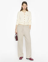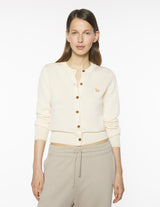 •Extra fine plain merino wool cardigan•Regular fit•Crew neck•Long sleeves•Maison Kitsuné engraved button closure•Rib finishing at the neckline, cuffs and hem•Baby Fox embroidered patch on the chest