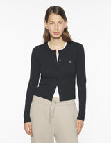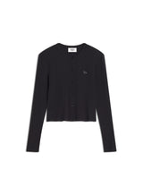 Refined rib-knit cardigan. Fitted fit with Tonal Baby Fox embroidered patch.