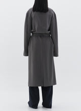 It can be opened and closed with a half-zip zipper at the neck, and a fabric belt is attached, allowing for a variety of looks.