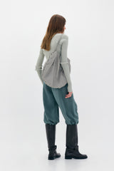This Low Classic Ribbed knit cardigan wrapped in a wrap style with the straps tied crosswise.
