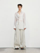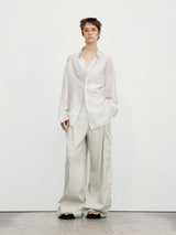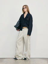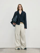 Light Khaki Linen Tuck Wide Pants