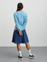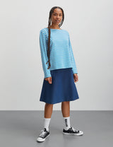 This Denim Skirt s made of 60 % recycled polyester and 40 % cotton that has been woven into light denim.