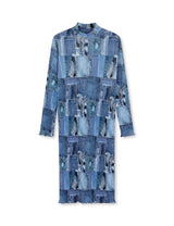 This Luno Halto Dress dress is made of 50 % recycled polyester and 50 % polyester that is woven into a lightly shiny, plissé fabric.