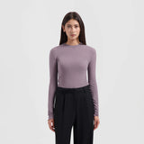 The ØLÅF Mini Logo LS Tee in Stone Grey s a sheer lightweight jersey, perfect as a standalone piece or as a layering basic.