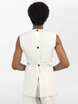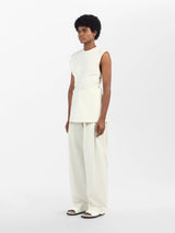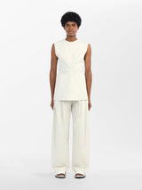 Constructed from two curved panels of our signature Italian powder cotton fabric, the Garda top gathers in at the waist before kicking out dramatically at the hem. It’s a three-dimensional piece, designed to be seen in motion.