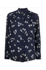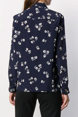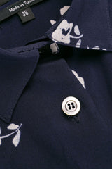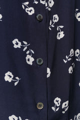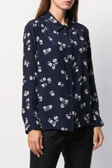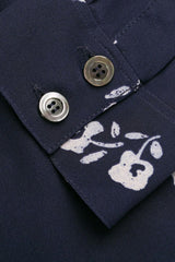 Navy silk floral print shirt from A.P.C. featuring a classic collar, a front button placket, long sleeves, button cuffs and a straight hem.