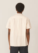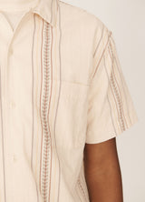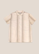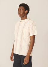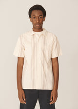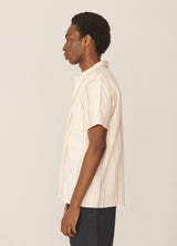 YMC Short sleeved Cuban collar shirt in Portuguese cotton with jacquard striping